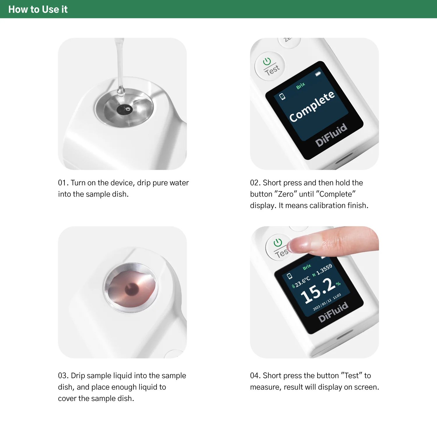 Highly recommended! I’d heard about the Difluid sugar refractometer brand for a while, and it was my trust in the brand that led me to purchase several units. The seller was very patient in answering my questions. The side data readings are stable, the app connects to my phone seamlessly, and it looks great. It’s easy to carry, comes with a protective case, and the build quality is excellent.